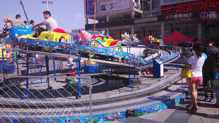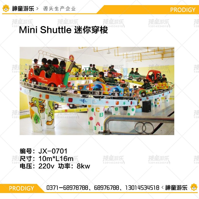 迷你穿梭又叫立環(huán)跑車,是在立交式軌道上行駛的一種新型游樂設(shè)備,它是由造型精美、風(fēng)格各異的跑車組成的浩蕩車隊,各自驅(qū)動同步行駛,沿軌道方向穿梭于具有現(xiàn)代化標(biāo)志的立式軌道上,配有五彩繽紛的彩燈、音響及兒童卡通畫裝飾。讓孩子們體會翻山越嶺和飛躍時空的感覺,夠刺激又無恐慌感,使人身臨其境,賞心悅目,深受兒童喜愛。