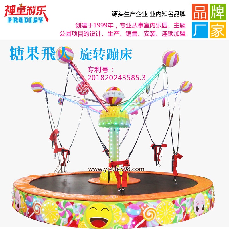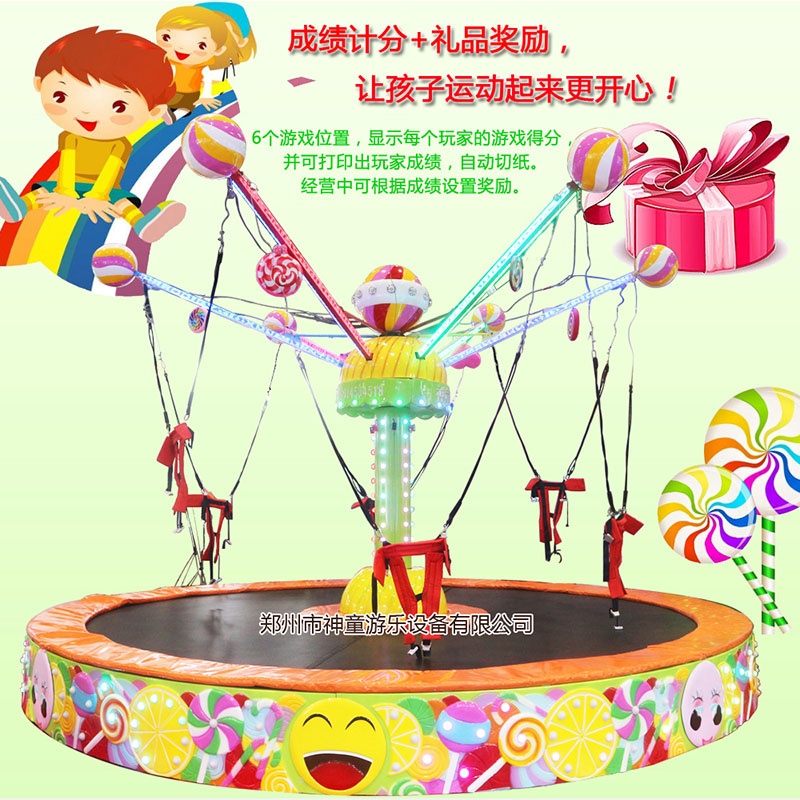 2018年,神童游樂最新推出一款大小通吃的蹦床設(shè)備【糖果飛人旋轉(zhuǎn)蹦床】