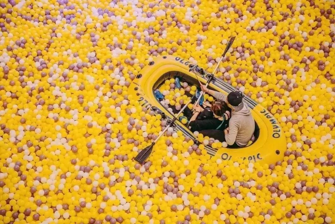 2、超級(jí)蹦床。想象一下,在一望無(wú)際、色彩斑斕的海洋球池里蹦來(lái)蹦去,而且怎么蹦怎么摔都不會(huì)痛,是不是很好玩呢?