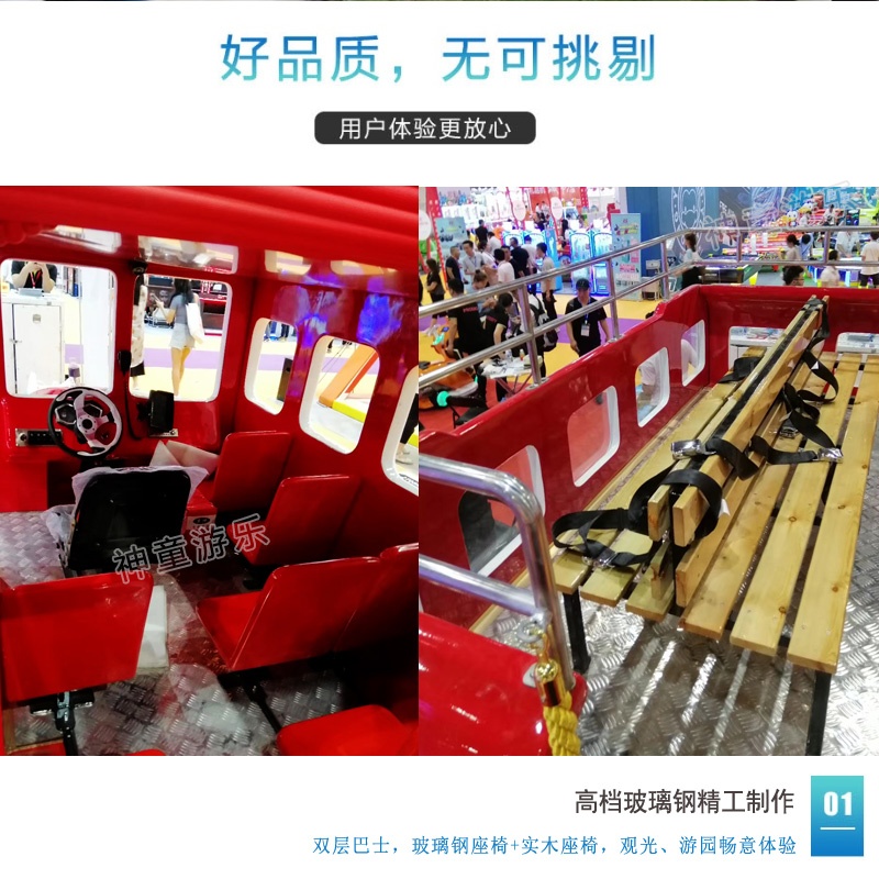 神童觀光車特色:豪華玻璃鋼材質(zhì),堅實(shí)輕巧絢麗有光澤;雙層倫敦巴士逼真造型,款式新穎;巴士車全方位的操控配置,體驗(yàn)駕駛樂趣;自帶4路監(jiān)控錄像,無死角即時監(jiān)控巴士周遭環(huán)境,便于安全駕駛;雙層設(shè)計,上下皆可乘坐,最多可容納15人,帶來更大收益;靈動、卓越,神童觀光車是游樂與街景重構(gòu)的必選產(chǎn)品,具備更強(qiáng)的景區(qū)競爭力!