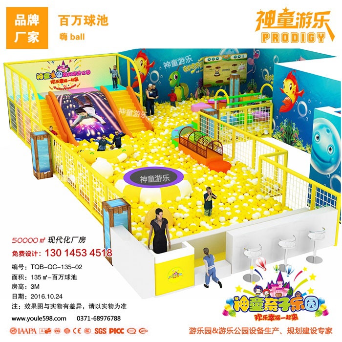 百萬闖關(guān)球池的玩法也是各種各種,有海洋球瀑布,就是一個(gè)大的海洋球里面裝著各種五顏六色的小海洋球,它會(huì)不定時(shí)的打開,這種情景從遠(yuǎn)方觀看就好比海洋球瀑布;海洋球噴泉,讓你領(lǐng)略一番海洋球滿天飛得滋味;海洋球蹦床,在上面你可以無所顧忌地蹦跳,即使摔倒了,迎接你的也是難以估計(jì)的海洋球,那種感覺,真正體會(huì)過的人才知道呢;海洋球大型滑梯,從上面滑下來,你很快就會(huì)被淹沒在五顏六色的海洋球堆中,在這種地方玩捉迷藏是不過了。