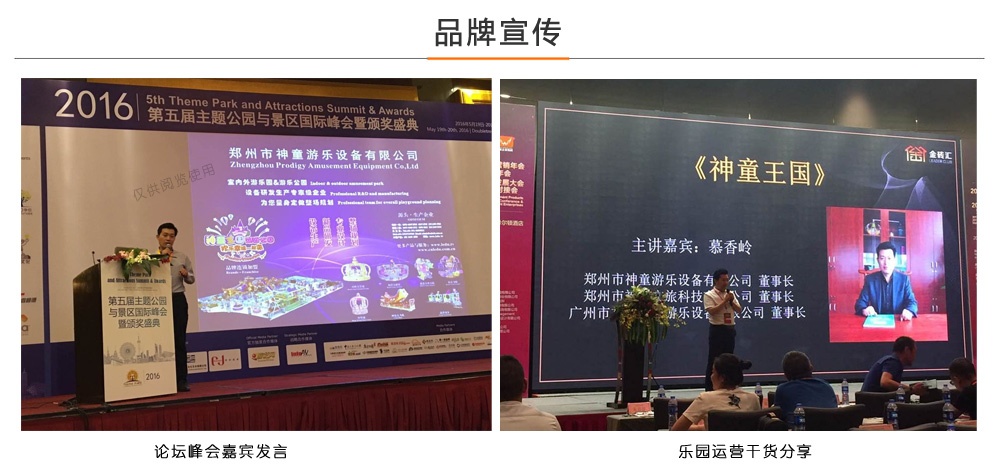 誠信3.15,維權(quán)在行動,2016年3月14日,由中央電視臺發(fā)現(xiàn)之旅頻道舉辦的《品質(zhì)中國行》欄目在央視演播廳進行了錄制。本次參與節(jié)目錄制的嘉賓為鄭州市神童游樂設備有限公司的慕總,節(jié)目中慕總針對兒童游樂設備行業(yè)進行了分析和解讀,并肯定了公司的“神童游樂,世界品牌”的經(jīng)營理念,堅定不移的追求產(chǎn)品品質(zhì),并以河南為中心,向中國乃至全球輻射,打造符合高品質(zhì)創(chuàng)新型游樂設備,從而使兒童放下電子產(chǎn)品走出家門,愛上兒童樂園的新型娛樂活動方式。